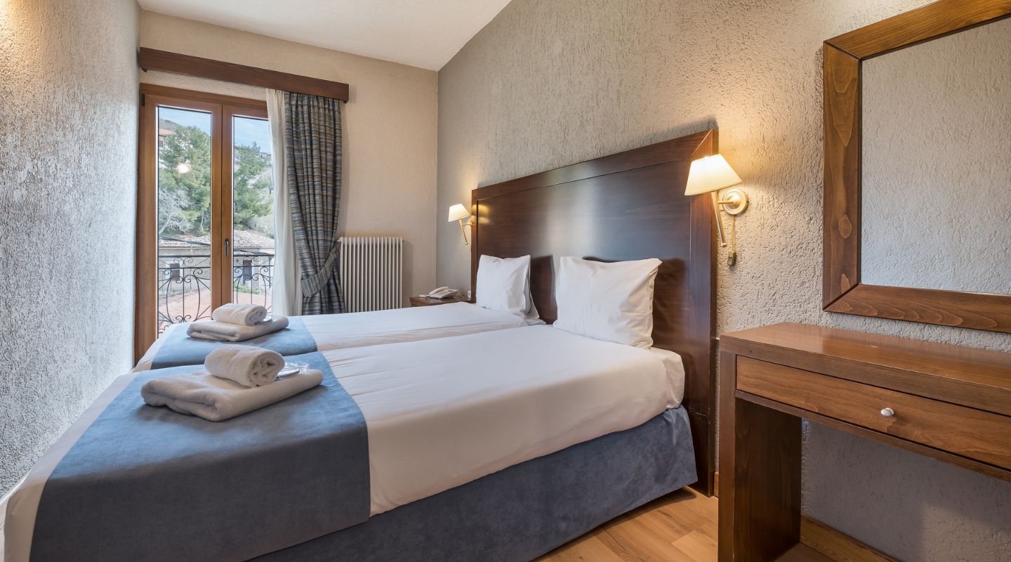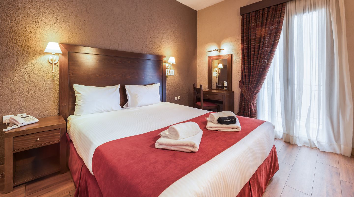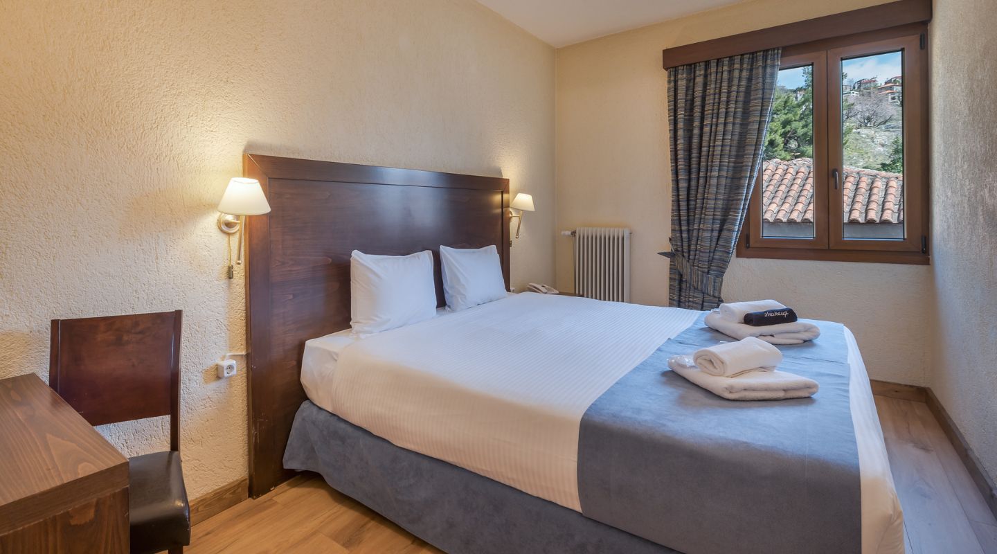 Μέγεθος δωματίου: 12-14 τ.μ. περίπου. Μέγιστη χωρητικότητα: 2 άτομα, ένα queen size κρεβάτι ή δύο μονά κρεβάτια (κατόπιν διαθεσιμότητας)
